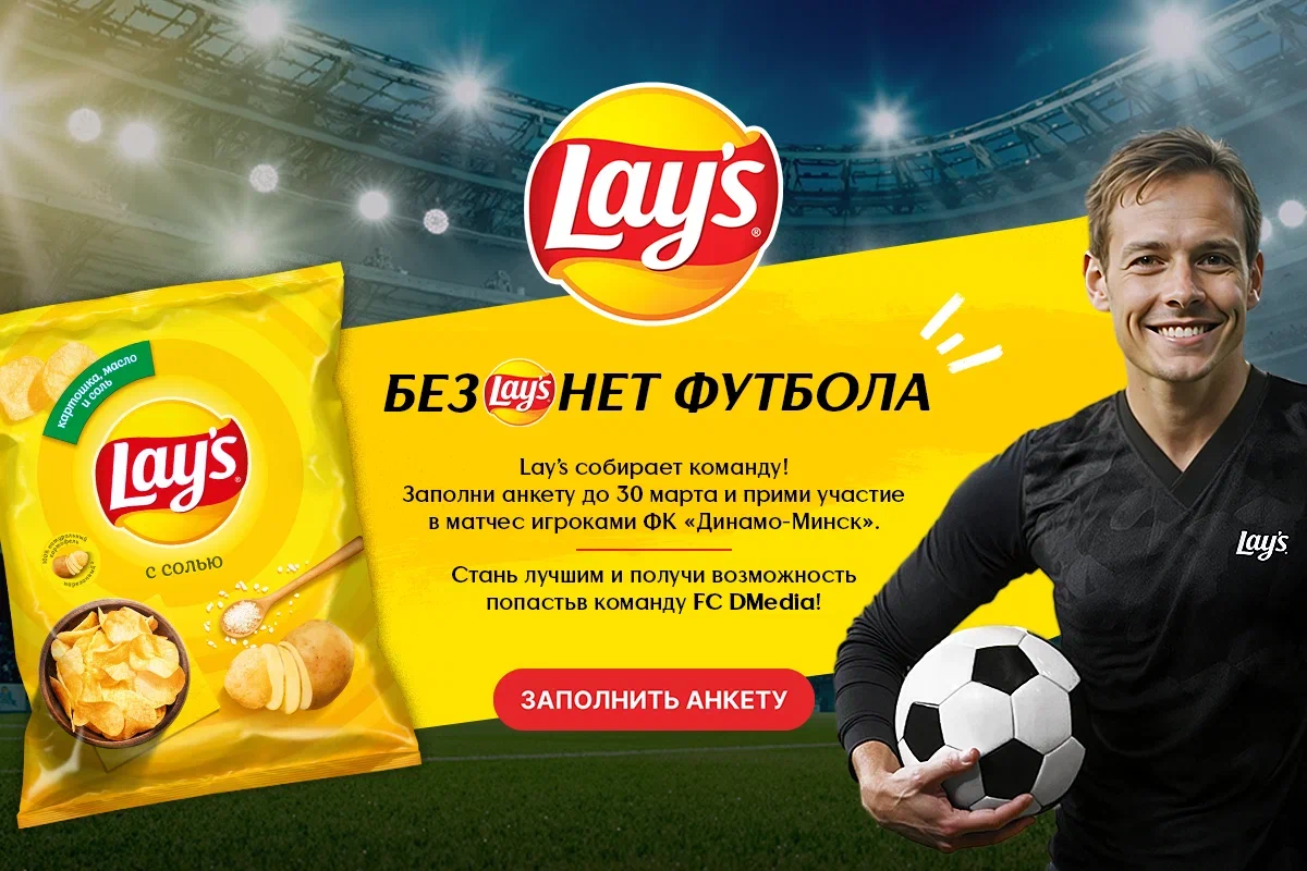 Время потрясающих новостей! Lay’s объявляет о запуске своего футбольного проекта в Беларуси и обещает воплотить в жизнь мечты тех, кто всегда хотел стать футболистом!