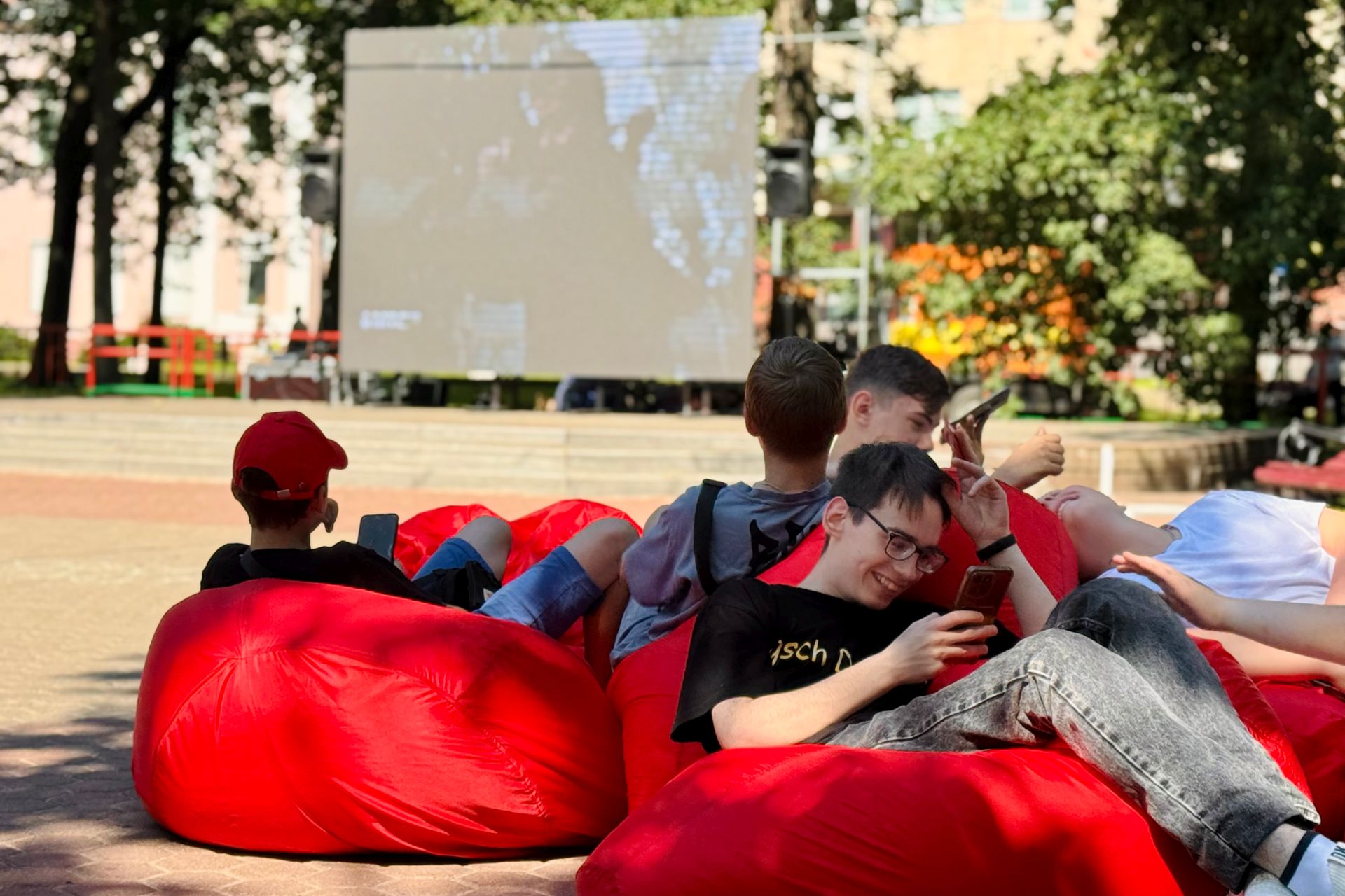 В столичном Яблоневом сквере на улице Калиновского МТС организовал зону отдыха и развлечений. Гостей встречала стильная лаунж-площадка с мягкими пуфами, где можно было расслабиться и насладиться праздником.