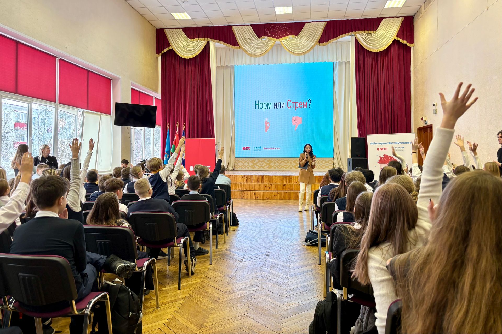 Компания МТС организовала для минских школьников мастер-класс, посвященный теме безопасного общения в сети и профилактике кибербуллинга. Мероприятие прошло в рамках социальной инициативы #ИнтернетБезБуллинга.
