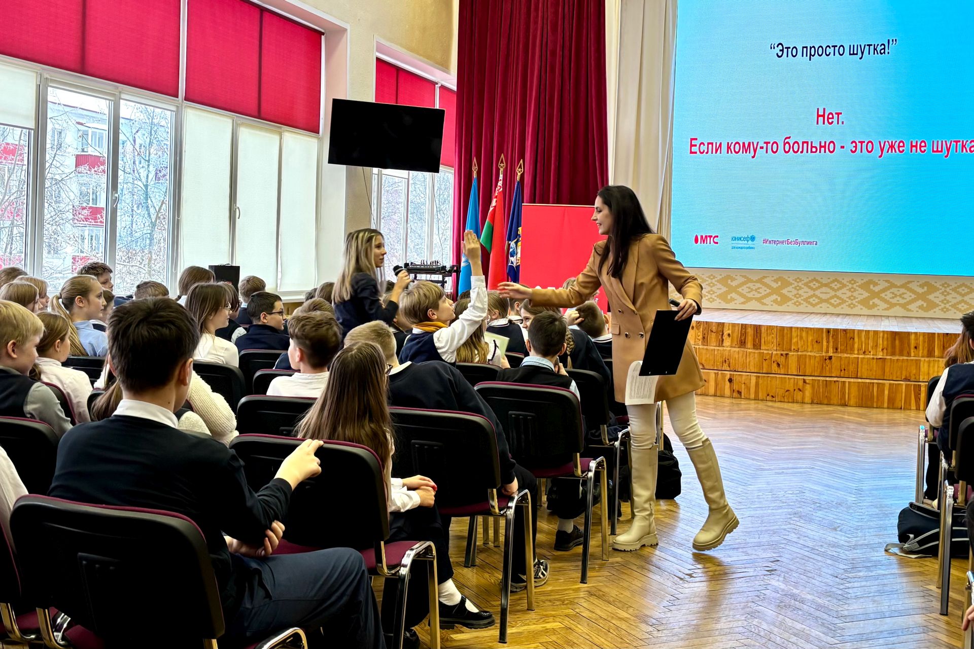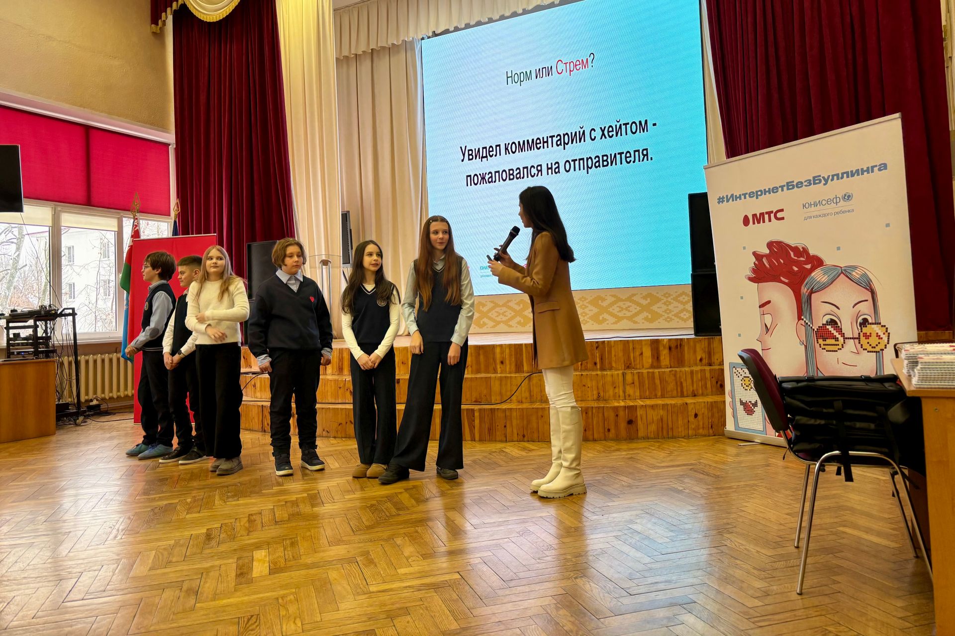 Компания МТС организовала для минских школьников мастер-класс, посвященный теме безопасного общения в сети и профилактике кибербуллинга. Мероприятие прошло в рамках социальной инициативы #ИнтернетБезБуллинга.