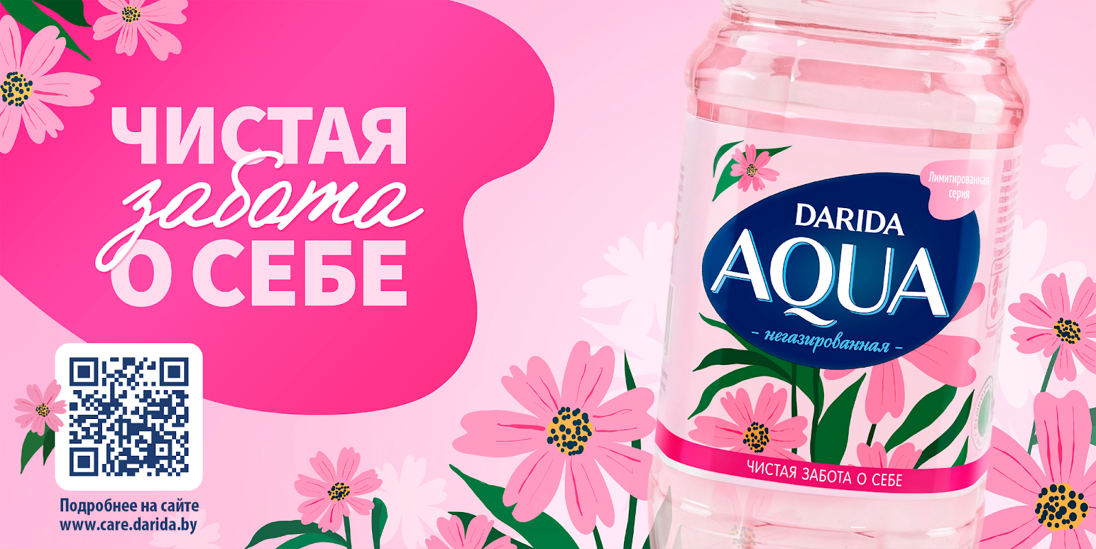 К запуску инициативы на полках магазинов появилась лимитированная весенняя серия AQUA DARIDA в нежном цветочном дизайне. На упаковке размещен QR-код, ведущий на сайт проекта с подробной программой и регистрацией на мероприятия.